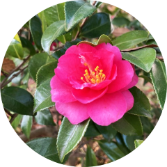開花時期は10月から12月ごろ。晩秋から初冬にかけて咲き出し、よい香りです。椿(つばき)によく似ていますが、椿は花全体が落ちるのに対し、山茶花は花びらが一枚ずつ散っていきます。