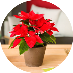 欧州では、クリスマスに赤色(キリストの血の色)を飾る習慣があります。ちょうどクリスマスの時期に「苞葉(ほうよう)」(芽や蕾を包んでいる小型の葉)の赤色が最高に美しく、下葉の緑色と調和し、花のなかの蜜腺の黄色が金色の鈴に見立てられることから、アメリカから欧州にわたったポインセチアはクリスマスに飾られるようになりました。フランスでは「étoile de Noël」(クリスマスの星)とも呼ばれ、日本でもクリスマスが近くなると花屋に鉢物が並ぶことから「クリスマスフラワー」と呼ばれて、この時期の季語にもなっています。