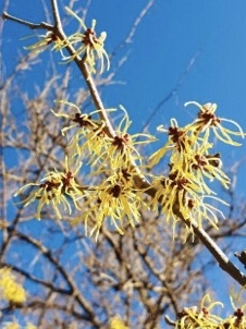 ◇「満作(まんさく)」◇ 学名:Hamamelis japonica マンサク科マンサク属の落葉樹。和名の「マンサク」の由来は、まだ雪の残る季節にいちばんに咲く(まず咲く、真っ先)花ということから付けられた、あるいは、黄色い紐状の花を枝いっぱいに咲かせる姿から「豊年満作」や「万年豊作」にたとえたなどいくつかの説があります。