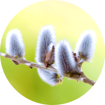 「柳(やなぎ)」の細く垂れる枝には若芽が芽吹き、日脚(ひあし)も目に見えて長くなって、陽光の明るさとあたたかさのなかに春を強く感じるようになります。「猫柳(ねこやなぎ)」は、ふわふわと柔らかい花穂をつけます。