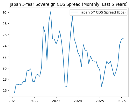 【図表②:日本5年物ソブリンCDSスプレッド(直近5年・月次)】